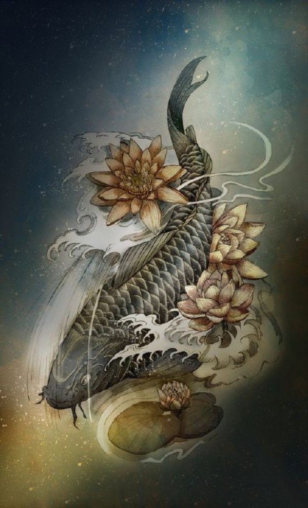 24张寓意富贵的锦鲤纹身手稿图案素材