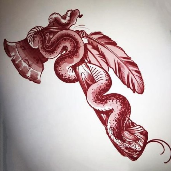 红色调的一组newschool纹身线稿手稿图案欣赏
