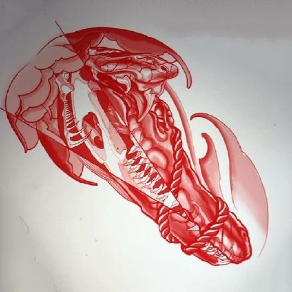 红色调的一组newschool纹身线稿手稿图案欣赏