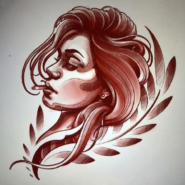 红色调的一组newschool纹身线稿手稿图案欣赏