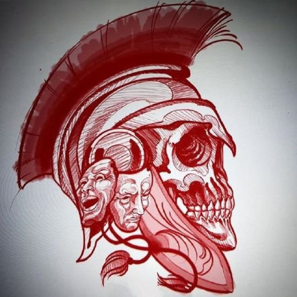 红色调的一组newschool纹身线稿手稿图案欣赏