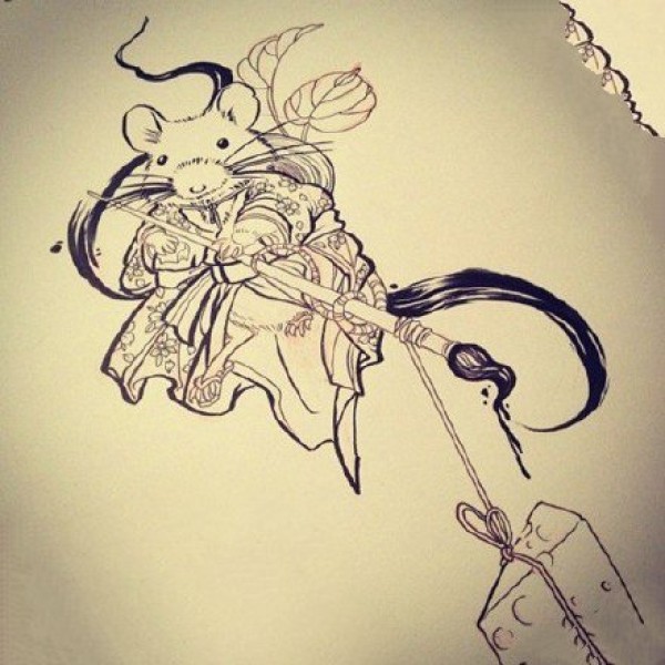 一组9张创意的小老鼠纹身手稿图案欣赏