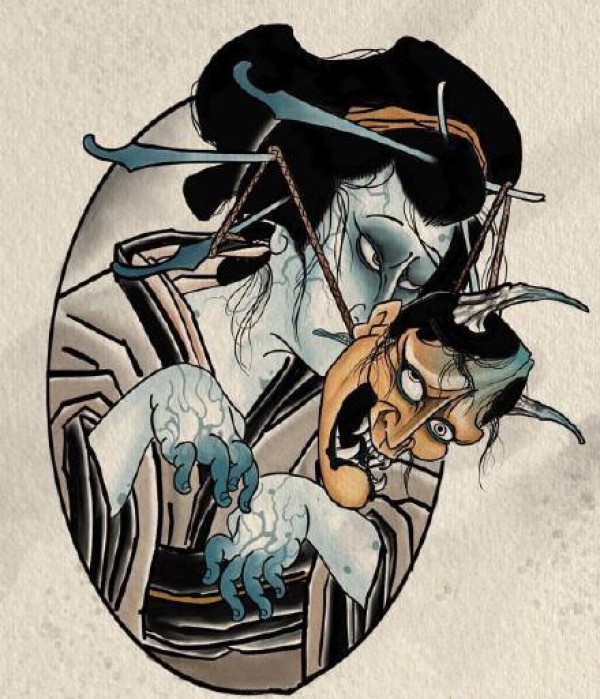 一组满背大气九龙拉棺纹身图案作品和手稿