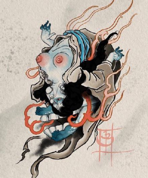 传统艺妓般若纹身图案手稿
