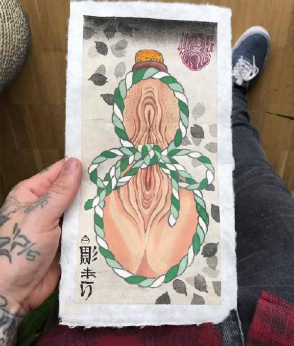 一组邪恶的男女性器的创意生殖纹身手稿图案