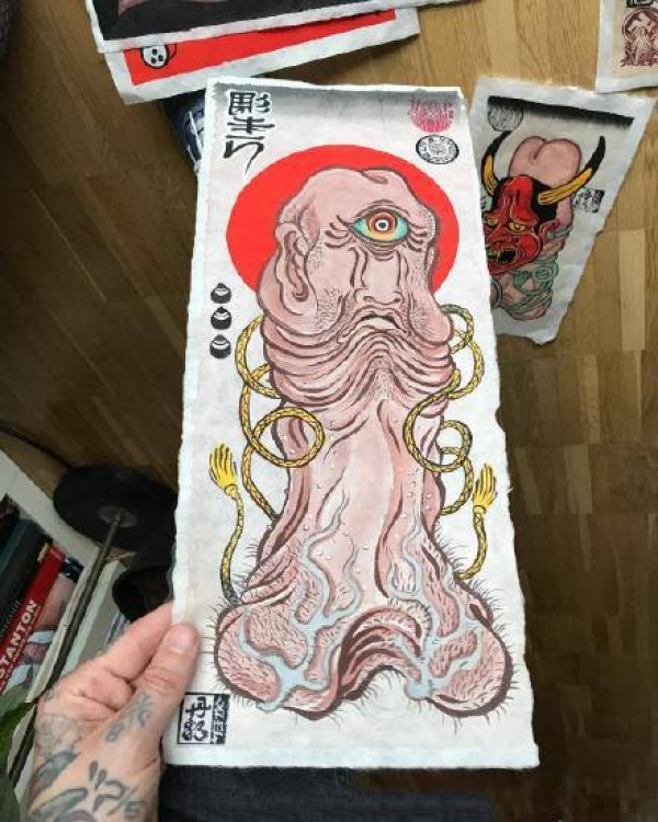 一组邪恶的男女性器的创意生殖纹身手稿图案