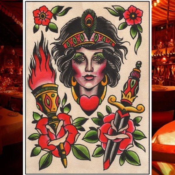 适合拼接的实用oldschool小彩图纹身手稿图案