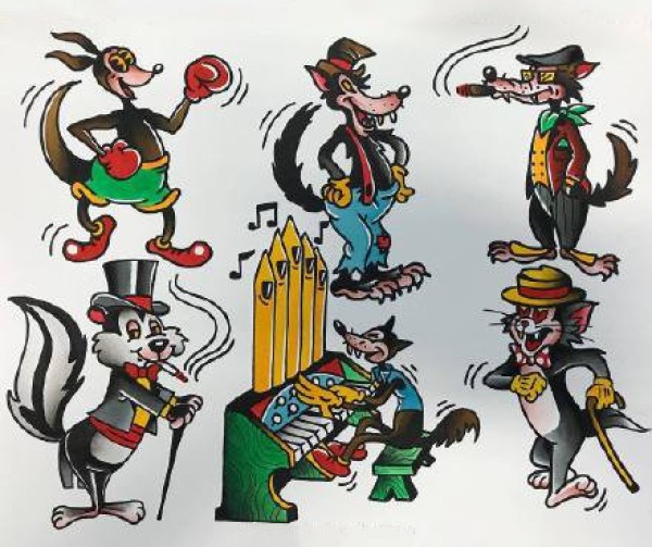 适合拼接的实用oldschool小彩图纹身手稿图案