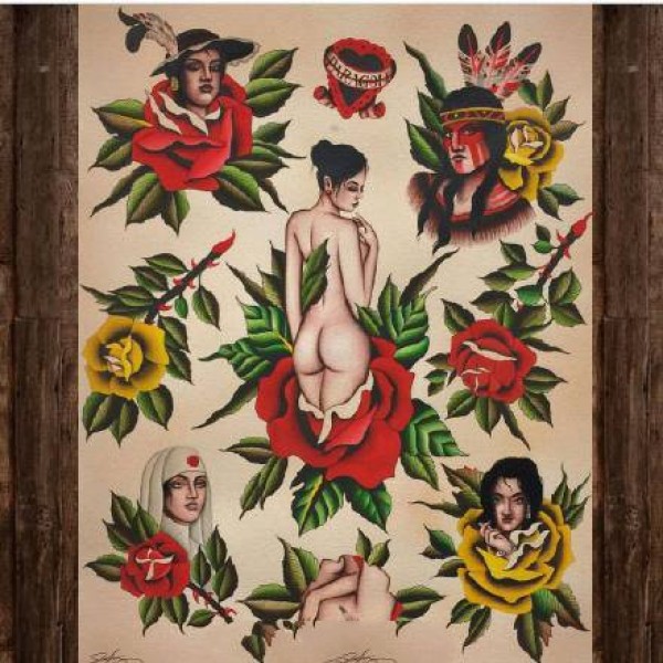 适合拼接的实用oldschool小彩图纹身手稿图案
