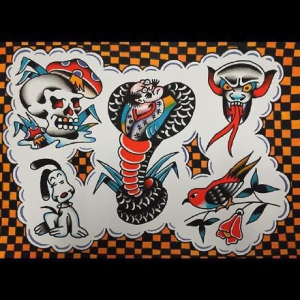 适合拼接的实用oldschool小彩图纹身手稿图案