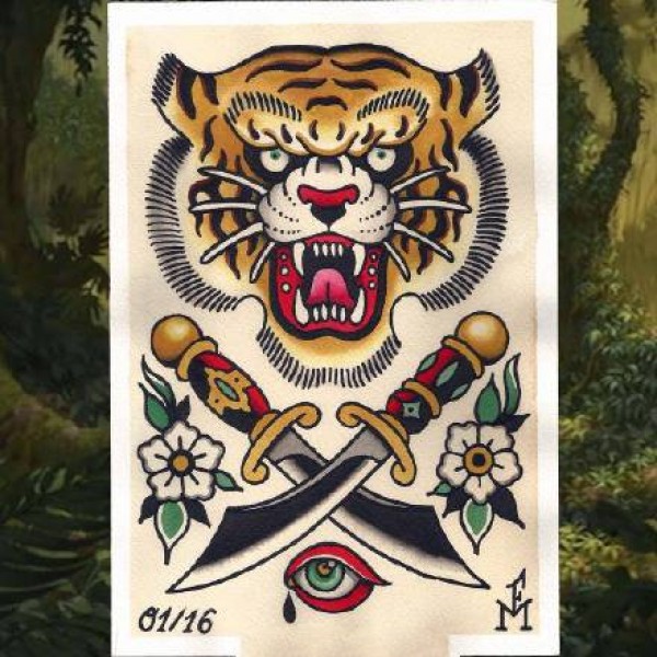 适合拼接的实用oldschool小彩图纹身手稿图案