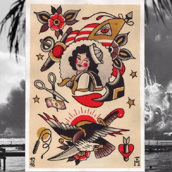 适合拼接的实用oldschool小彩图纹身手稿图案