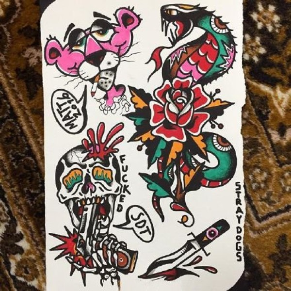 适合拼接的实用oldschool小彩图纹身手稿图案