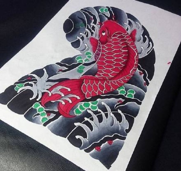 一组满背大气九龙拉棺纹身图案作品和手稿