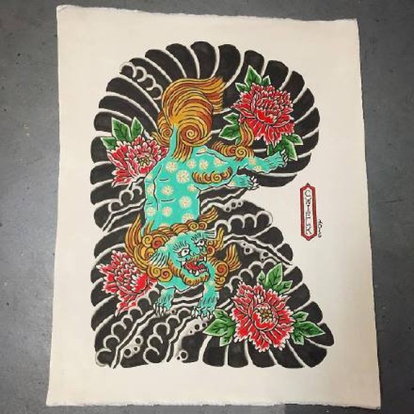 半甲唐狮手稿 传统的9款唐狮主题半甲纹身手稿图片