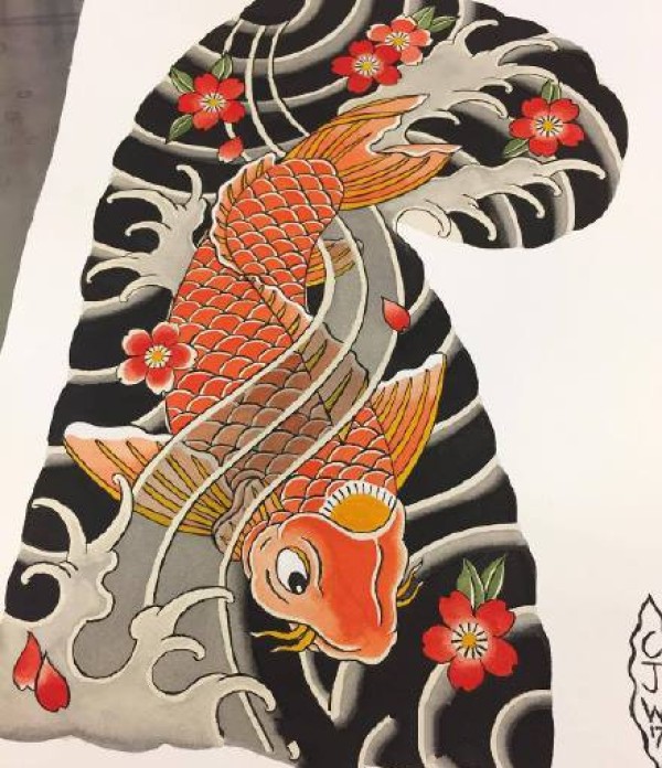 传统的30款鲤鱼纹身手稿图片赏析