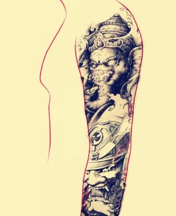 半甲唐狮手稿 传统的9款唐狮主题半甲纹身手稿图片