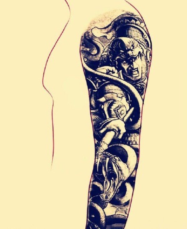 一组满背大气九龙拉棺纹身图案作品和手稿