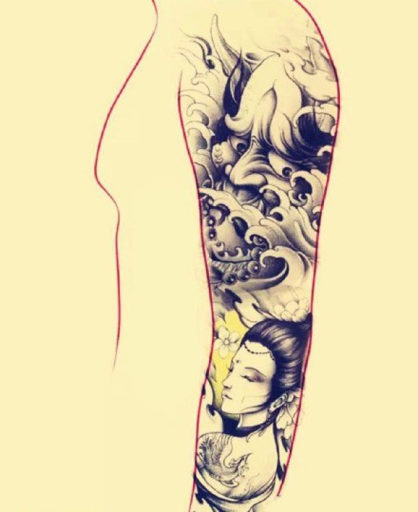 半甲唐狮手稿 传统的9款唐狮主题半甲纹身手稿图片