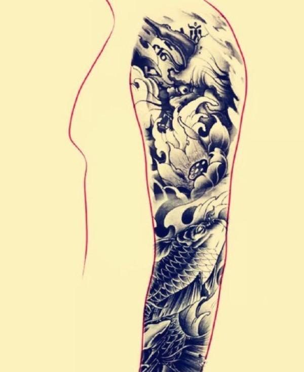 半甲唐狮手稿 传统的9款唐狮主题半甲纹身手稿图片