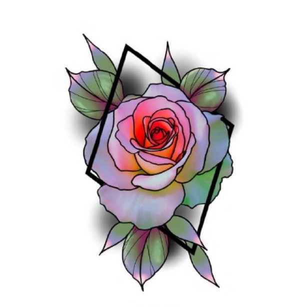 三角形等几何图形+玫瑰花纹身手稿图案17张