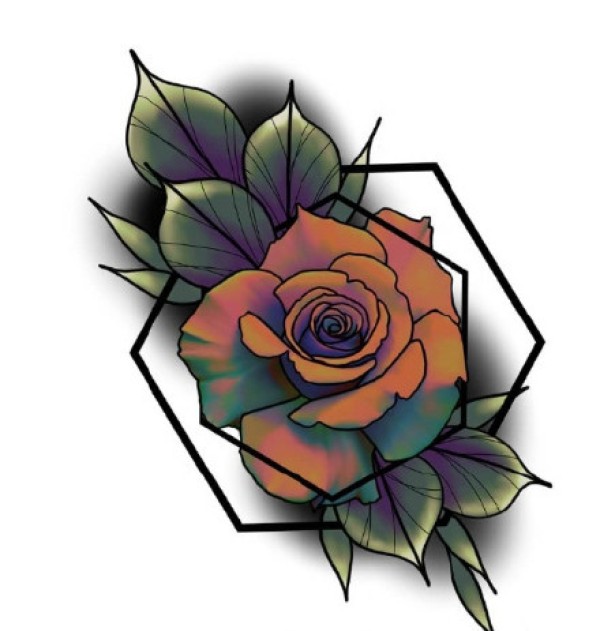 三角形等几何图形+玫瑰花纹身手稿图案17张
