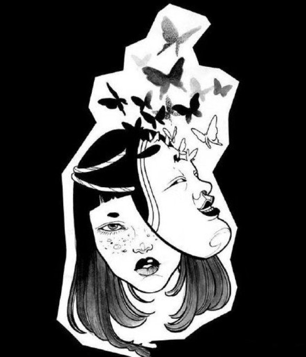 戴面具的女孩子纹身手稿图案8张