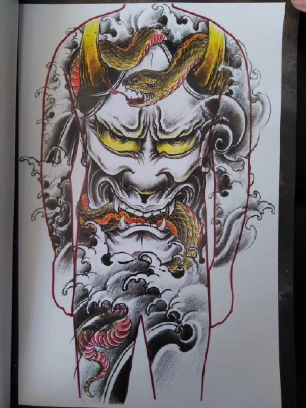 一组满背大气九龙拉棺纹身图案作品和手稿
