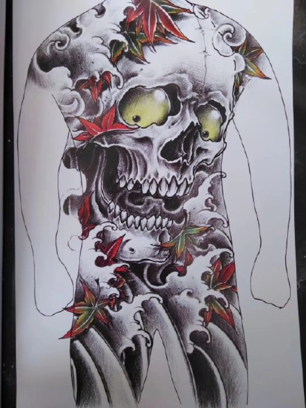 一组满背大气九龙拉棺纹身图案作品和手稿