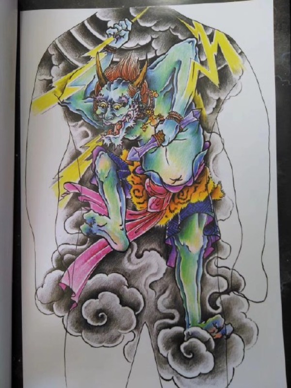 一组满背大气九龙拉棺纹身图案作品和手稿