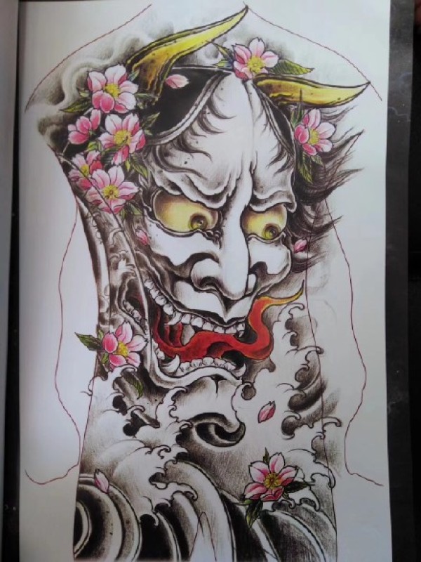 一组满背大气九龙拉棺纹身图案作品和手稿