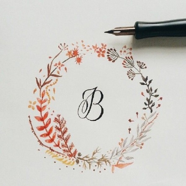 创意彩色花环+字母设计的一组纹身手稿素材图案