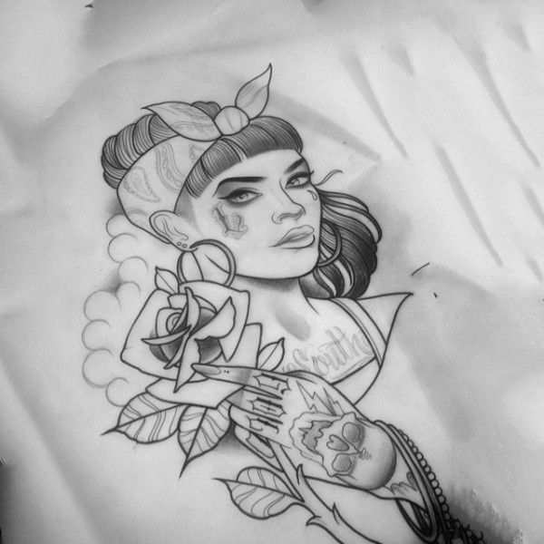 女郎线稿--22张优秀的欧美女郎纹身线稿手稿图案