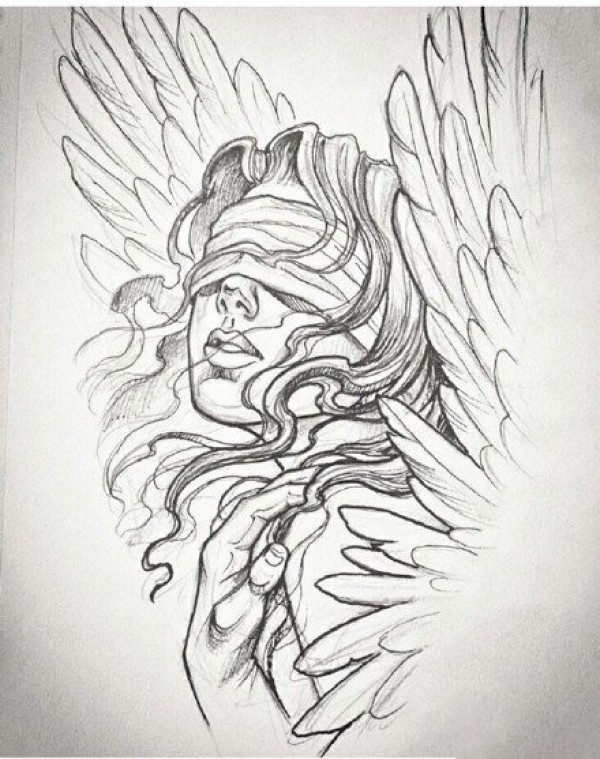 女郎线稿--22张优秀的欧美女郎纹身线稿手稿图案