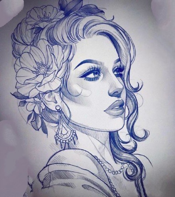女郎线稿--22张优秀的欧美女郎纹身线稿手稿图案