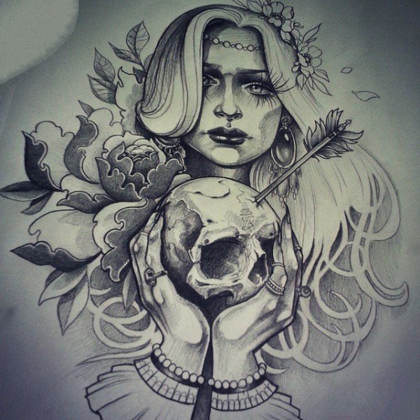 女郎线稿--22张优秀的欧美女郎纹身线稿手稿图案
