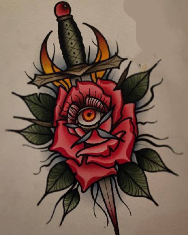 暗黑风格的一组old school纹身手稿图