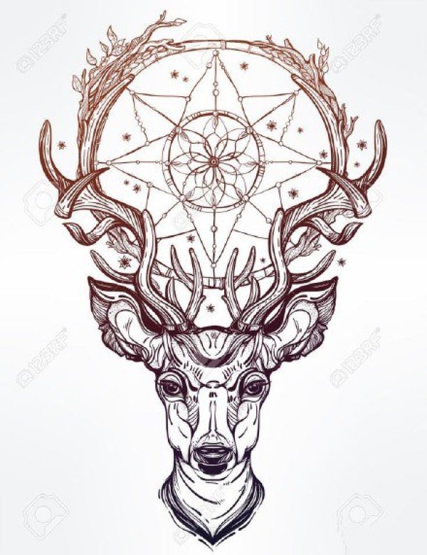 18张麋鹿相关的一组鹿纹身手稿图案
