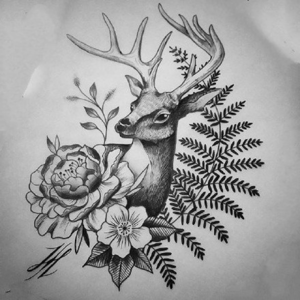 18张麋鹿相关的一组鹿纹身手稿图案