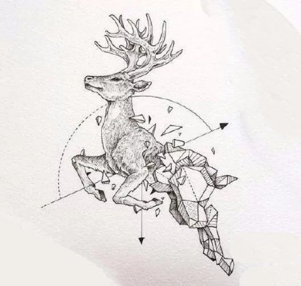 18张麋鹿相关的一组鹿纹身手稿图案