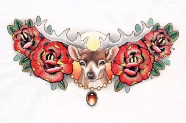 18张麋鹿相关的一组鹿纹身手稿图案