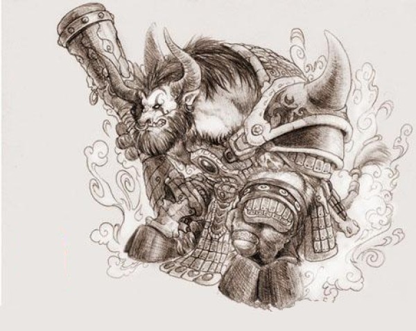 9张关于牛魔王的纹身手稿图案线稿