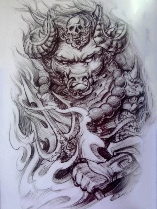 半甲唐狮手稿 传统的9款唐狮主题半甲纹身手稿图片