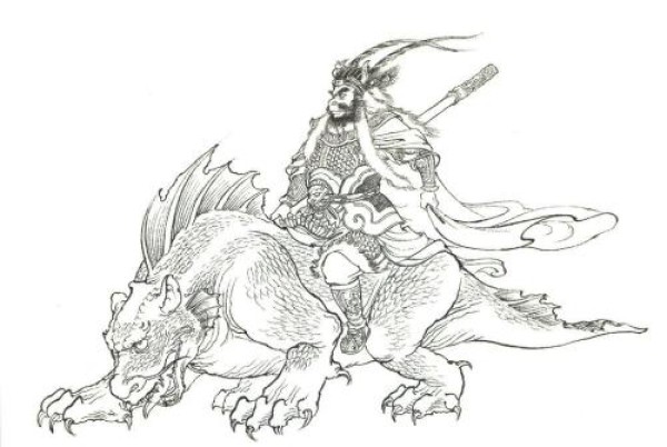 半甲唐狮手稿 传统的9款唐狮主题半甲纹身手稿图片