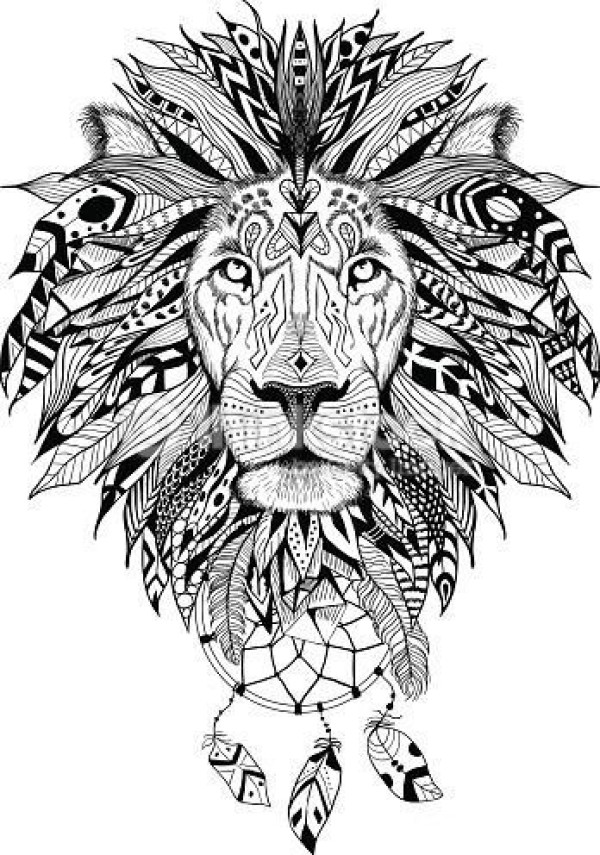 狮头手稿--27张优秀的黑白色狮子头纹身手稿素材图案