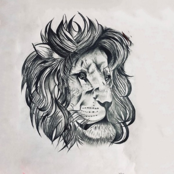 狮头手稿--27张优秀的黑白色狮子头纹身手稿素材图案