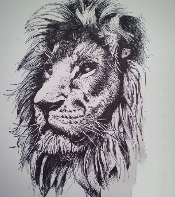 狮头手稿--27张优秀的黑白色狮子头纹身手稿素材图案
