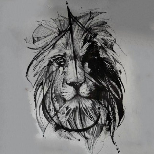 狮头手稿--27张优秀的黑白色狮子头纹身手稿素材图案
