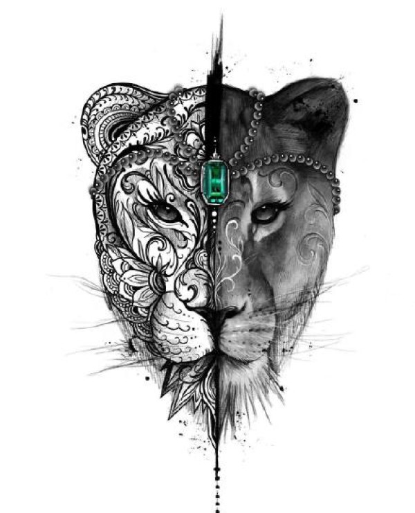 狮头手稿--27张优秀的黑白色狮子头纹身手稿素材图案