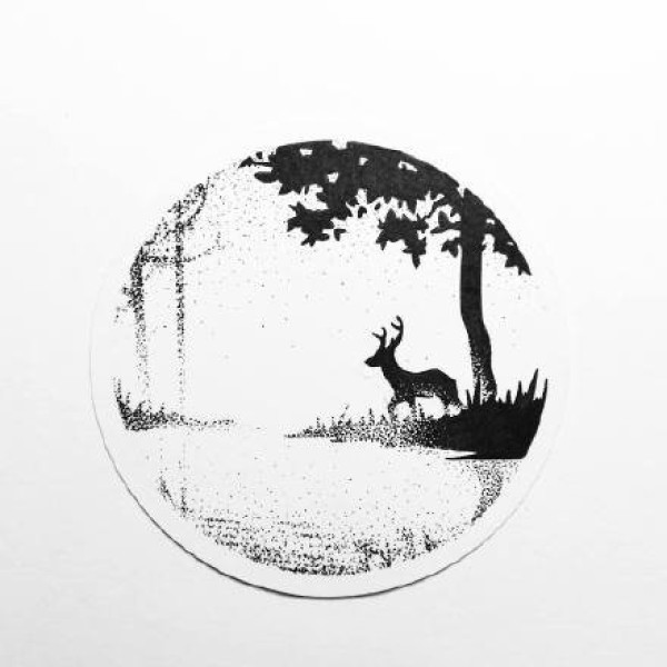 点刺小鹿手稿:几何点刺圆形中的小鹿纹身素材图片